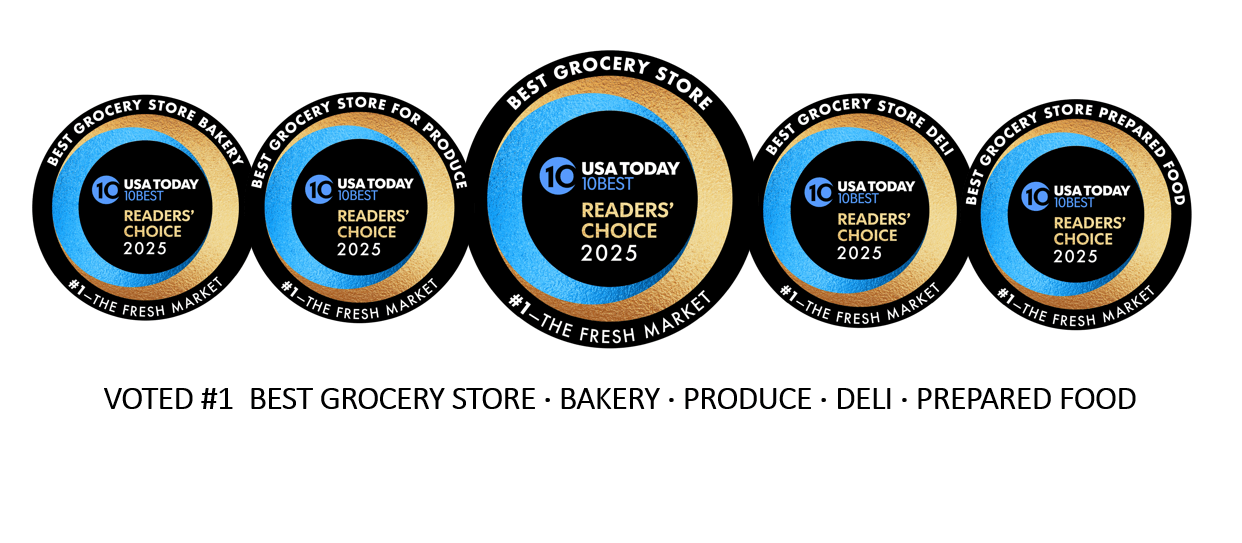 We're proud that USA Today’s 10Best Readers’ Choice Awards recognized The Fresh Market four times including 2025 as “Best Grocery Store in America” and also voted us #1 in all other Grocery categories for 2025: “Best Grocery Store Bakery”, "Best Grocery Store Produce", "Best Grocery Store Deli" and "Best Grocery Store Prepared Foods".